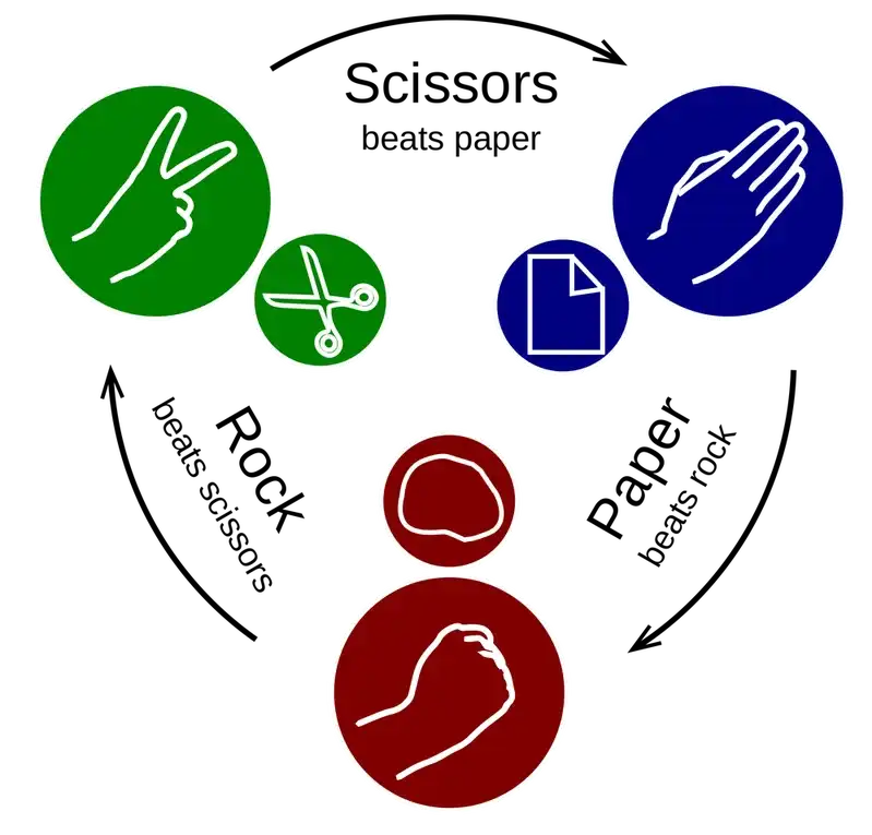 Going over Rock-Paper-Scissors again, the rules of the game are simple. Two players each simultaneously draw a hand with one of the three shapes—rock, paper or scissors. The outcome of the game is then decided by which of the three shapes were drawn and how they interact.